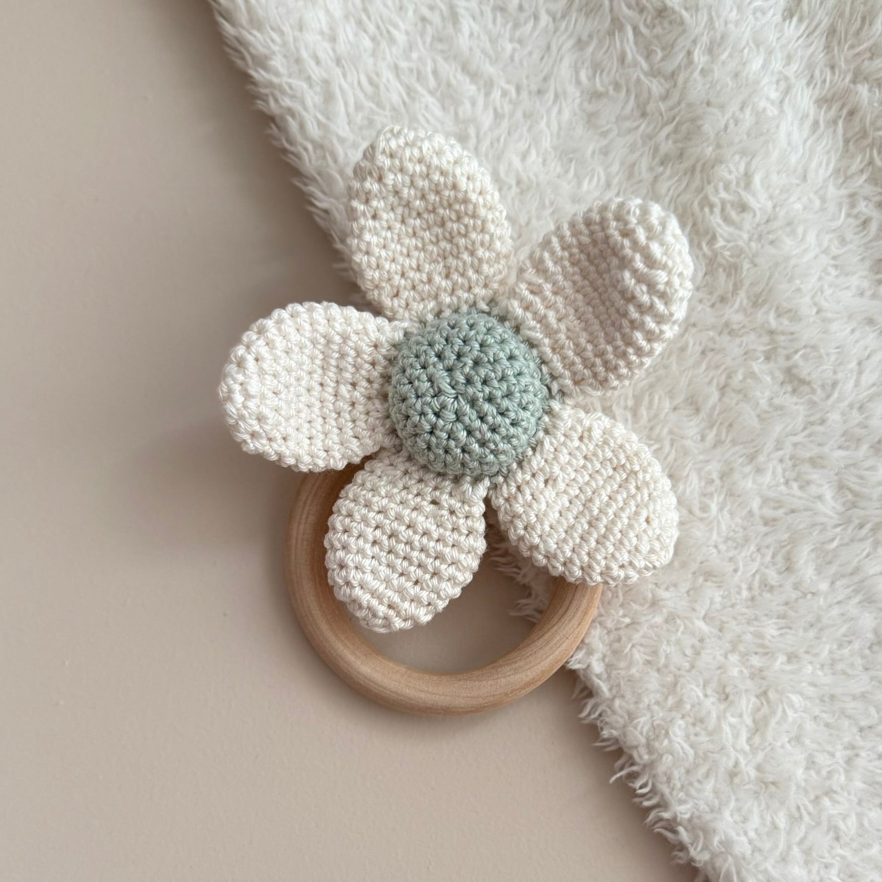 Gehaakte rammelaar bloem groen