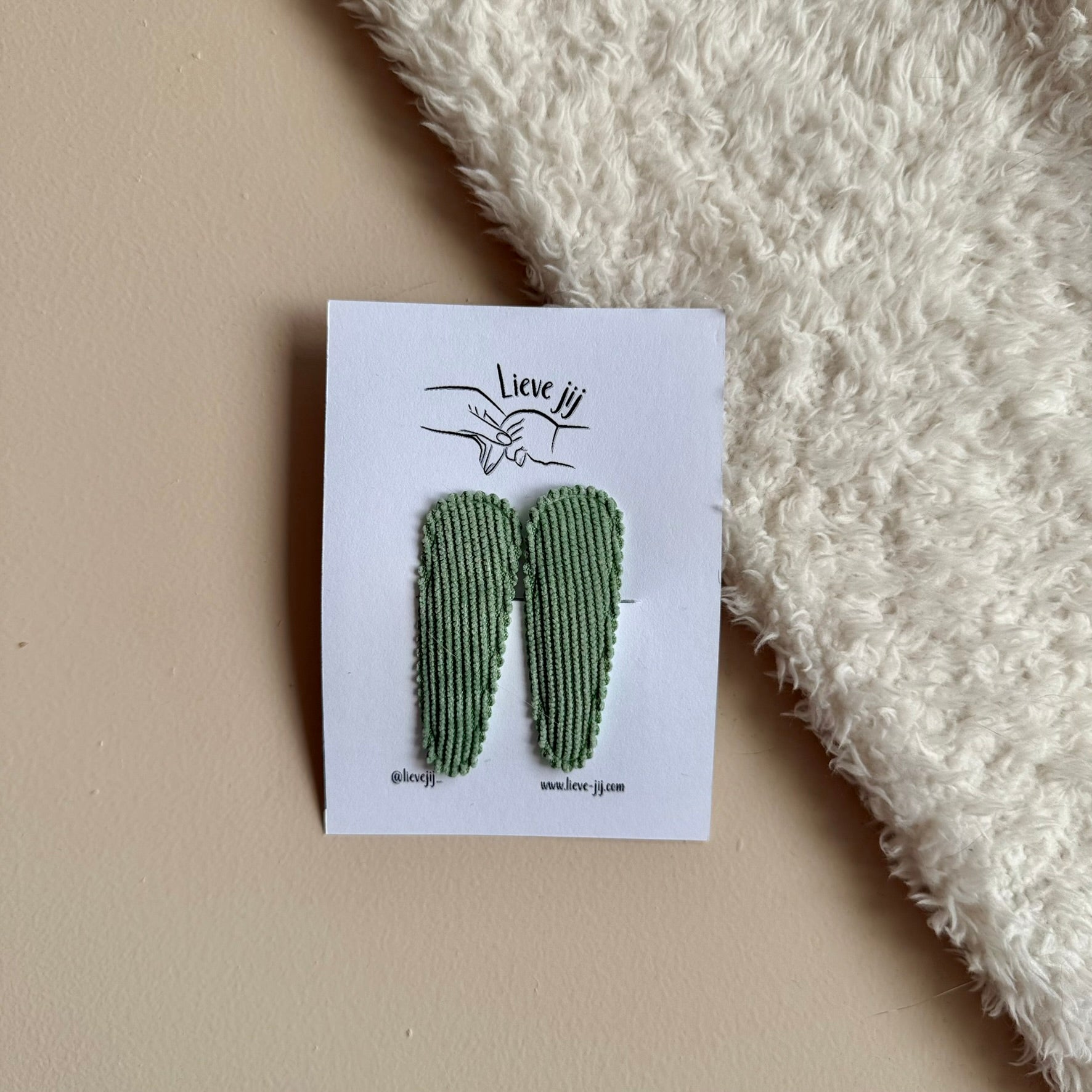 Groene rib stoffen clipjes.